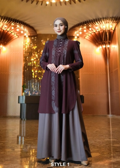 Zahra Dress Dewasa Style 1 – Coffe x Dark Maroon