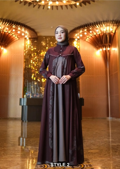 Detail Produk Zahra Dress Dewasa Style 2 – Coffe x Dark Maroon