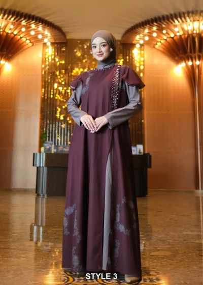 Zahra Dress Dewasa Style 3 – Coffe x Dark Maroon